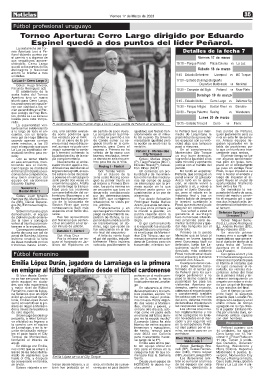 La superioridad visi- El cardonense Eduardo Espinel dirige a Cerro Largo, escolta de Peñarol en el apertura