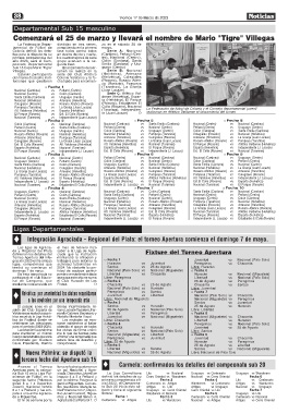 ría Sub 15 en la Liga Pal- ciada, Deportivo Juvenil se La Liga Carmelitana Lito vs Nacional Uruguayo vs Centenario Uruguayo vs Wanderers