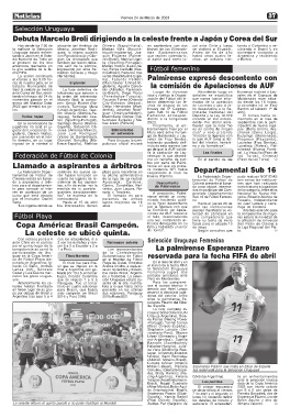 tamental de Fútbol de rán fijados tomando en la oficina administrativa Nueva Palmira. La Federación Depar- pudo realizar NOTICIAS