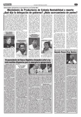 Productores de Colonia mar medidas, como el co- Julio Cardozo mos en vista un crédito ciencia agropecuaria. Va- dos nosotros a pegar un