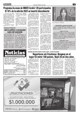 Suscripción Mensual en Colonia ........................ $ 350 El informe del año sonas que ocupaban car- En setiembre, el Sindi- ble y peligroso del sistema