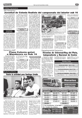 de la capital del país, aho- to Keguay tras ganar la de Peñarol y en Sub 17 de Regional del Plata por Cancha de Colón - Hora 17:00: