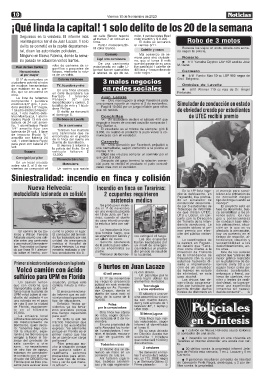 trol la situación, espe- porque en Florida es el da 1 computadora, 1 mo- En su casa ubicada 1 colisión en Nueva Helvecia causó lesiones