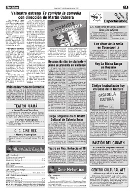 rio del Carmen, con en- loncello), interpretará arreglos de tango, mi- menia, también en luga-