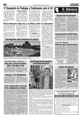da por la Comisión Pro Colonia Suiza Nueva mos, la que con satisfac- zan a esta región del este Movimiento Nuevas Ge- NOTICIAS que "es la
