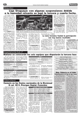 Peñarol 23, Colonia 20, Uruguayo 17, Santa Emilia Santa Emilia (Cardona) ......... 0 Esparta (Helvética) ................. 5 Cancha de Rosario Atlético – 19:45 hs.
