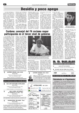 Cardona: concejal del FA reclama mayor vimiento, reuniones, lla- el medio, el pueblo de