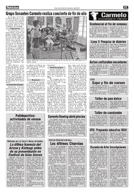 lonchelo y contrabajo. El repertorio será muy blica. En Carmelo, el gru- En cuanto a la ense- acto de fin de cursos. la institución.-