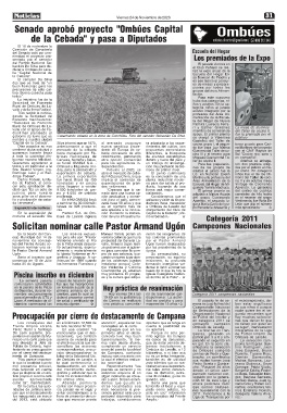 "Nos parece importan- de Ombúes de Lavalle, a la cual el efectivo realiza- también es de utilidad sus rivales fueron José Matías Bárcena, Lau-