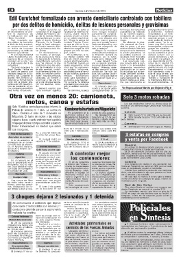 Miguelete. El hurto de motos y las estafas Miguelete fue hurtada la denunció el 27 de se- 30/9 Yamaha Crypton T110 LAW 244 de Al-