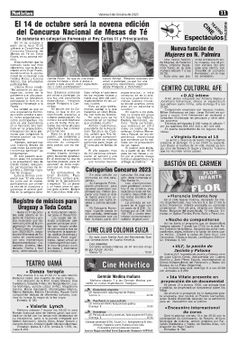 con seis Intendencias trarse, deben enviar al vas Generaciones en Nueva Helvecia. tal. Entradas: $ 100.