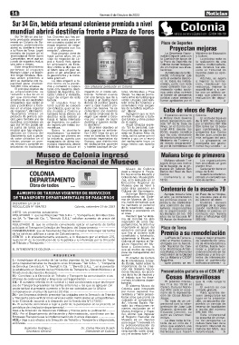 to de Colonia de acuerdo a lo dispuesto por la Resolución N°1173/92.- sumarán al conglomera- Se trata de un uni- ción, se encuentra dis-