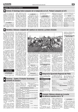 Tarariras y Centro que Lavalle, Independiente, juega este domingo con Peregrinos ................. 4 Segunda División