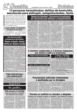 Marcha en Rosario: reclaman linquir agravado en rei- pefacientes. Pena: 2 años sión preventiva por 180 de un delito de asocia-
