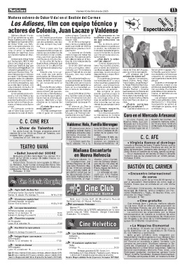 pasaban 3 películas y si bien épocas, directores y orga- Uruguay y para el Festival bajo de sentarme todos los Eleonora Pérez de Juan La- 200 y para jubilados o estu-