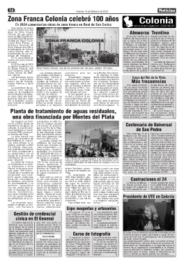 de Zonas Francas, que Zona Franca Colonia, una de las primeras tres del país, celebró 100 años. Desde la hora 12:00 un costo de $ 750 por la