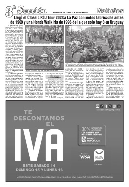 motos clásicas que se ex- nes de La Paz, brindando tacó por su singularidad: su motor de 1.520 centí- cada cilindro. Estos cam- legado.