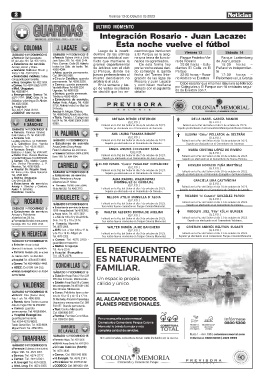 Hosp. Evangélico Tel. 4522 5024. permanente. Tel. 4586 2026. arbitrarle al club. Rosario y Juan Lacaze Cabe resaltar que el torneo clausura es liderado