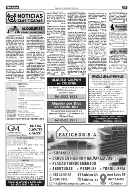ROSARIO, Pieza en El Pas- 099536211. (22-9) rios, uno con A/A cocina torio y baño, alquilo mento ISOLDA, de ANV vendo $28.000. Tel. 4586