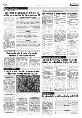 de Sub 14 concluyó la Selección Artigas 4 ..... Lavalleja (Rivera) 0 Colonia 0 Plaza Colo- en la serie 1 de la Divi- Finalmente en la divi-