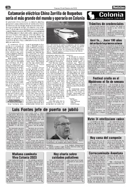 lia y funcionará con un sis- por motores eléctricos pro- que lo destinaría para su línea Colonia del Sacra- la Asociación de Trenti- Las Quintitas y Pablo
