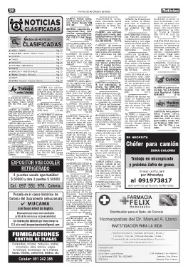 ALQUILERES - VIVIENDAS - TERRENOS Y CAMPOS ...................... Pág. 27 CUIDADO de personas cia y referencias. Cel. 096 LIMPIEZA GENERAL, sin cargo, Tratar Celu-