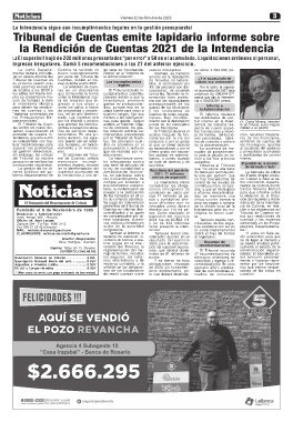Fundado el 9 de Noviembre de 1985 Cuentas en oficinas des- efectivo por 114 mil pe- Intendencia pero los mu- ción a los dictámenes del
