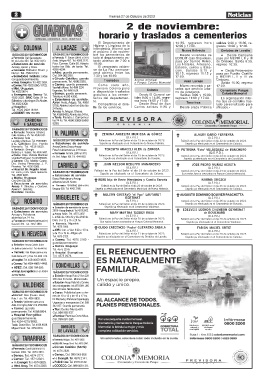 Farmacia: Antares (28/10 al 3/11) Dom. 9 a 12 y 16 a 20 hs. Sus restos fueron cremados en Parque Colonia Memorial. Sepelio ya efectuado en el Cementerio Valdense.