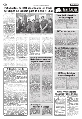 para el Fortalecimiento con la adquisición de dados Acústico; 16:00 Pu- cía Gatti; 20:00 Ensam-