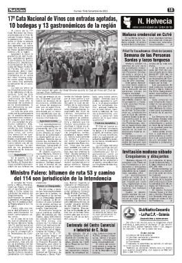 la Intendencia de Colo- con las rutas 15, 91 y 17. El sábado 23 el cias, fondue a cargo de Orden del día