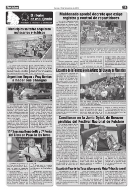 en Paso de los Toros la 11ª El lunes abrió la muestra quedó claro el costo del ar- adecuadamente. la magnitud”.
