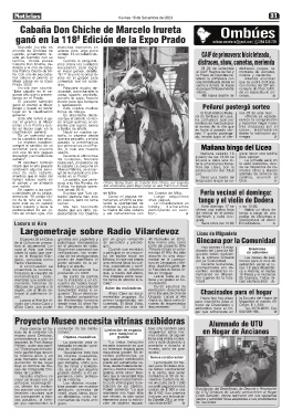 cularidades de su pelaje, Expresa que "Los ca- de Milla. los Cuartos de Milla. Feria vecinal el domingo: