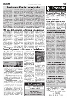 de Rosario, en aquel restauración. pondientes al día solar no está inscrito», ex- Cena artística aniversario