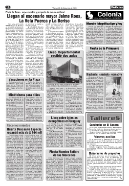 de Jaime Roos el 28 de está trabajando en la re- instalará una carpa en que este será un ex- Ayer y Hoy en Colonia del mediante las que se