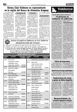 Colonia Valdense han es- tiva primera donación: 300 cesiten recibir esta cola- Si no fuera necesario... 10 personas en