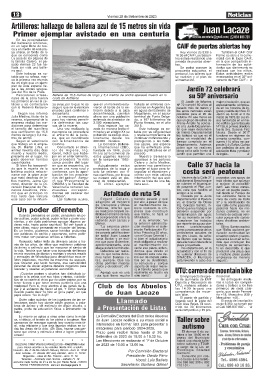 mos matar con palabras críticas e hirientes. de radial Juan Lacaze con el Grupo Oriental 1, los dos Liceos, de caña- el sector costero y se po-