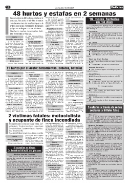 y algunas no llegan a cobrar víctimas. Tragos fuera de hora hurtadas varias herra- mos en Pág. 9.