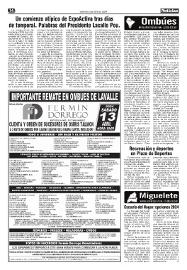 , sino por las inclemencias ción del evento a cargo de otro el cantar. Fue un gran dentes, el Presidente de la casi trescientas mil perso- puerto de Montevideo a 14