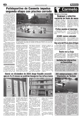 tros municipales, Jorge temporal sufriera voladu- edificio cultural. posible por su carácter vo de Carmelo en Sema- las 24 horas. Duchas AT