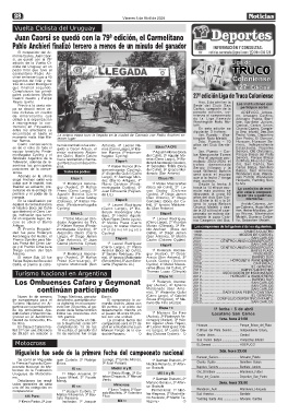 encontraba el hasta el La octava etapa tuvo la llegada en la ciudad de Carmelo con Pablo Anchieri en 1er. Puesto - Was- Pedro Voley, Deportivo