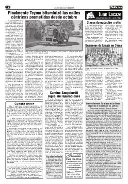 Fue algo imposible, pero que Dios hizo, para remar- tenido respuesta. puesta a estos planteos. Balneario Artilleros hacia Juan Lacaze. Ambos em-