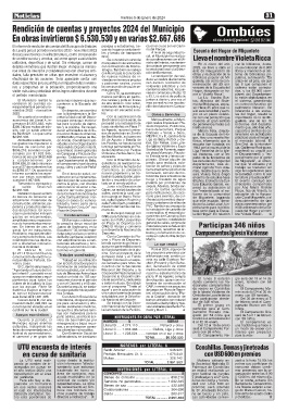 El informe de rendición de cuentas del Municipio de Ombúes pasajes a estudiantes, be- ca en el cruce con el Cami-