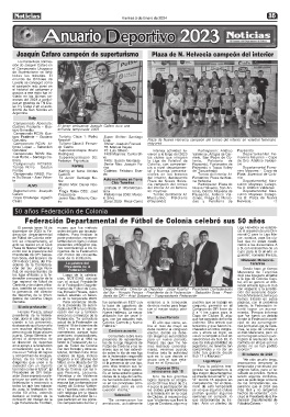 Campeonato RC5N: Na- Rodríguez F400 Mayores: Carlos Sil- vieron a lo largo del 2023 Valdense, Artigas de Car- Departamental Fe-