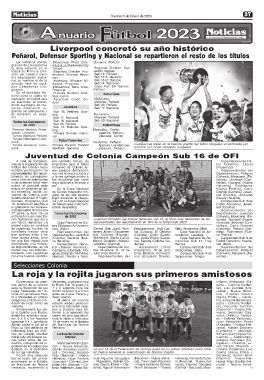 hace cuesta arriba, pero (Colonia), Nacional (Nue- Wanderers (Santa Lucía), na), Santa Emilia (Cardo- Copa Nacional de Se- Campeonato Sub 14 de