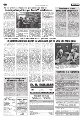 el Libertario, hómonimo en Montevideo. carta orgánica o estatu- lle y 13 de Carmelo. reestructuración de deu- previa a los comicios de