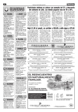 SÁBADO 3 Y DOMINGO 4 SÁBADO 3 Y DOMINGO 4 gó en julio pasado. adelanto y no una partida impuesto. de aumento y que se re-