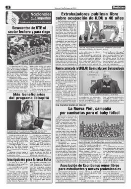 bó un descuento mensual del electrónico al MGAP, Direc- Nueva carrera de la UDELAR: Licenciatura en Biotecnología