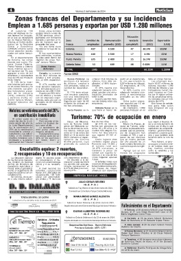 Bruto Interno. dos, el 99% dependien- Nueva Palmira: se virtieron 16,9 millones de pacto en el departamen- Dpto en zonas francas.