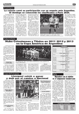 en las tres categorías, tus de Tarariras), Camilo nia), Joaquín Cámara y campeonato en la Copa de Uruguay .....................12 ..... México ......................... 1
