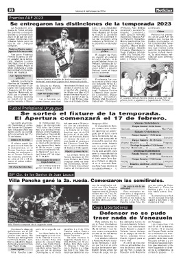 Se realizó en el Esta- El Campeonato Uru- bol, que será el 30 de ju- Uruguayo 2024. Viernes 16 de febrero